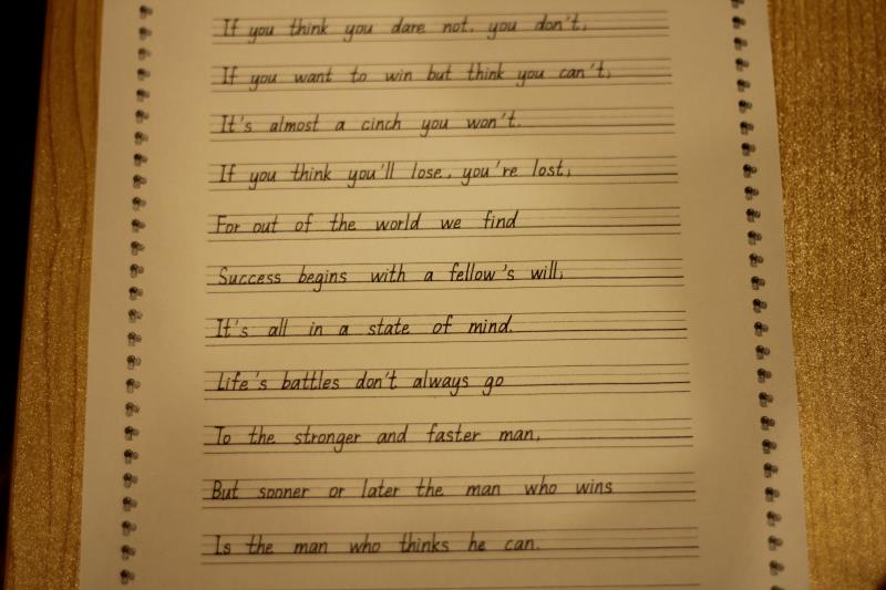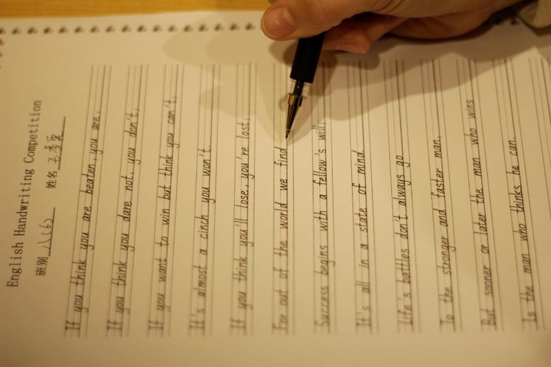 据悉,“衡水体”英文书写为最受欢迎的评卷字体,其特点是圆润、饱满,字母的高度、大小、间距、单词间距均精雕细琢。星汇学校此次英语美文书写大赛不仅将美育、德育与英语教学紧密结合,更是一项未雨绸缪、有的放矢的活动,立足当下,谋虑长远。