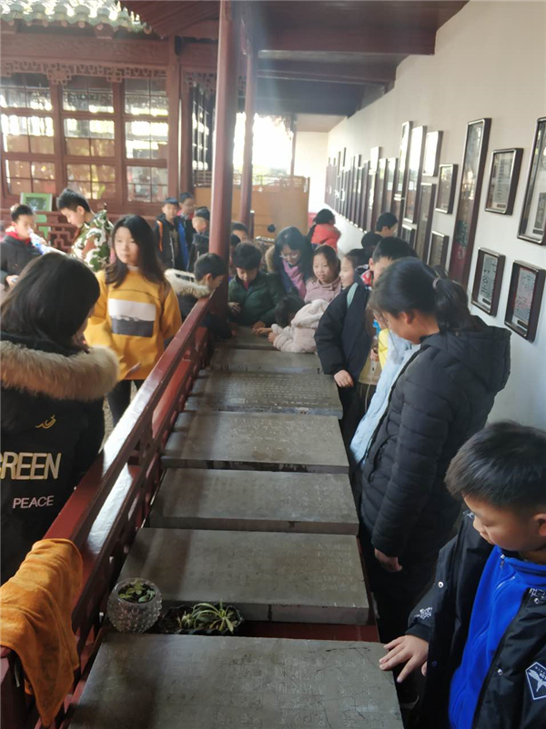 此行以西泠印社为第一站,坐落于浙江省杭州市西湖景区孤山南麓的西泠印社参观学习,该印社于清光绪三十年由浙派金石篆刻家叶舟、丁友仁等发起建立,以“保存金石、研究印学”为宗旨,是中国研究金石篆刻艺术历史最悠久、影响最大的著名学术团体,现已发展为一个国际性的研究印学、书画的民间艺术团体。社内环境幽雅,风景秀丽,楼台亭阁建筑精美,摩崖石刻星罗棋布。行走于其中,感受这片土地上曾有李叔同、黄宾虹、丰子恺、吴湖帆等大师相聚于此,探讨印学、书画,更有吴昌硕等一代巨擘在此进行研究和创作。星汇学校研学小组重点参观了的金石篆刻,由同行的苏州科技大学和苏州职业技术学院的两位老师为学生们讲解,大家无不赞叹感慨。
