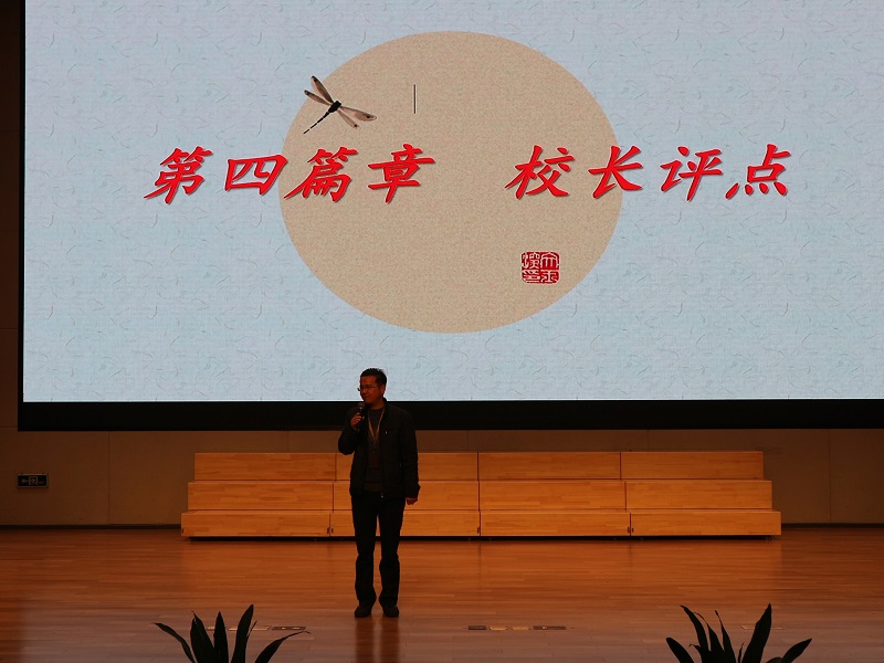 随后,星汇学校谢剑雄校长发表了热情洋溢的讲话。他指出,此次诗歌朗诵会,每一个班级都精心准备,编排新颖,注重创新,用不同的演绎方式表达了青少年对中华文化的理解和对诗词的感受。星汇校园在紧张的学习之余,也将为大家创设更多的、更好的交流机会。他希望通过这些活动,让孩子们更加热爱中华文化,用诗词创造更美好的生活,这才是星汇的底色和精神。最后,谢校长带领大家一起喊出了星汇的校园精神:俊彩星汇,并祝大家在新的一年里学习进步、工作顺利、万事如意。