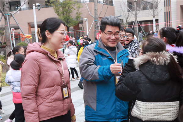 除了对五彩缤纷的灯笼爱不释手外,孩子们对灯笼上的字谜也兴趣盎然。他们或一人看着字谜,细细推敲,反复思考;或三五成群,互相提示,彼此分享。干净澄澈的眼睛里写满专注,稚气天真的脸庞上洋溢着欢乐。猜到字谜后,孩子们迫不及待地与老师们分享这份欢喜与自豪。
