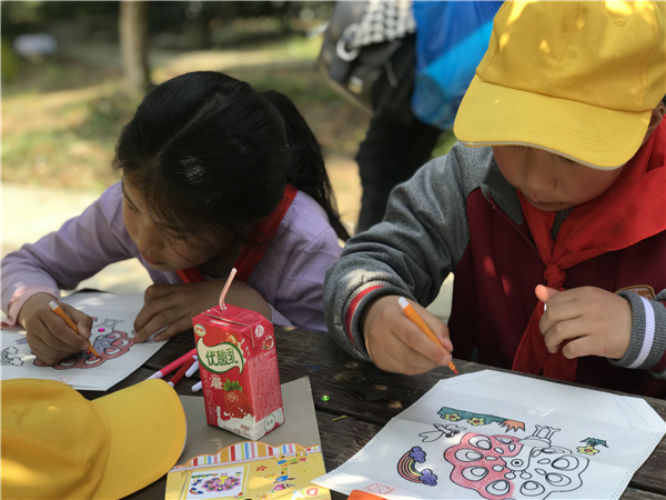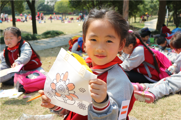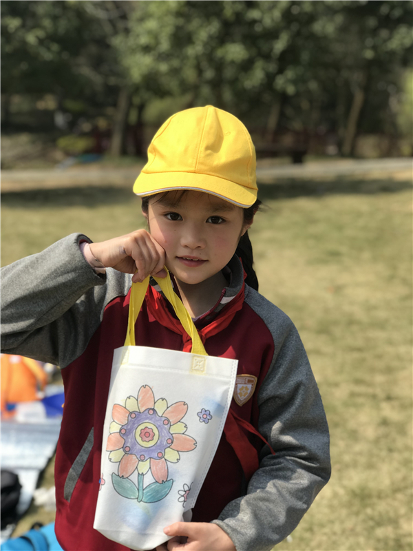 观赏完美丽的春光景色,孩子们拿出小小的画笔,在帆布小包上绘上心中的春天。五彩缤纷的颜色、形态各异的小动物、繁茂葱翠的植物,是孩子们对春天美好的期许,更是他们对人与自然和谐相处的美好心望。