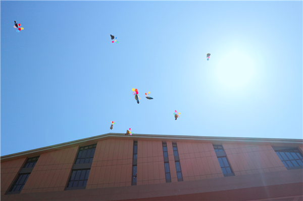 孩子们握着五颜六色的气球跑到童话镇的中央,迎着盛春的阳光放飞多彩的气球。一只只气球在清澈的蓝天下渐飞渐远,仿佛一个个多彩的梦境在孩子们的心中飞翔,孩子们望着气球许下美好的心愿。