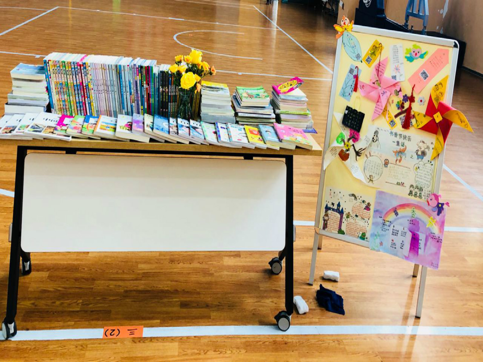 下午两点活动准时开始,孩子们怀着激动的心情来到场地,放眼望去,各个班级的书摊风格迥异、布局美观、书籍丰富,书摊旁边还摆放了展示班级阅读成果的精美展板,可见老师们为了这次活动费劲心思、花样百出。