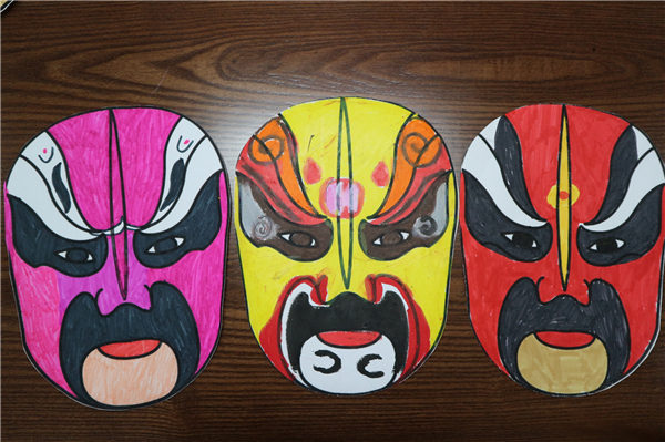 京剧脸谱以浓厚的脂粉绘制出各种夸张图案,人物角色的个性特征尽显其中,孩子们对这种独特的妆容分外好奇。徐璟怡老师带着孩子们绘制起各种人物脸谱,孩子们或是专心描绘着忠肝义胆的关羽,或是细心勾勒着彪悍多谋的典韦,或是用心绘制着粗犷勇猛的张飞。一张张栩栩如生的脸谱在巧手妙心下应运而生。