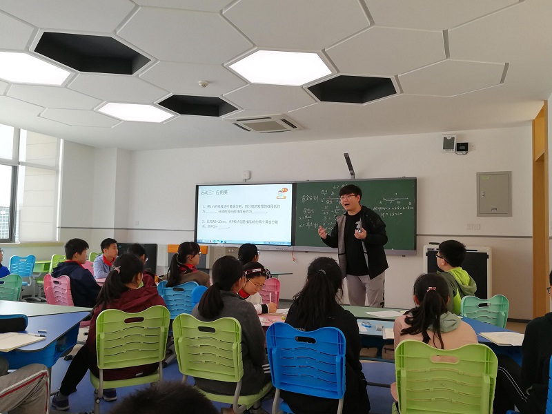 在数学课堂,数学老师们精心准备,注重创新。七年级的《二元一次方程》,2位老师聚焦核心素养,以学生为主体,创设情境,自主探究,合作交流,注重启发学生思维,共同探寻多样的解题方法,精彩纷呈,各有亮点,充分体现了教师们扎实的教学基本功和丰富的教育智慧。八年级的《黄金分割》,老师们将数形结合思想贯穿始终,用凝练的语言将复杂难于理解的过程公式清晰、明确的表达出来,带领孩子畅游数学天地,也体现了数学严谨、科学、理性的学科之美。