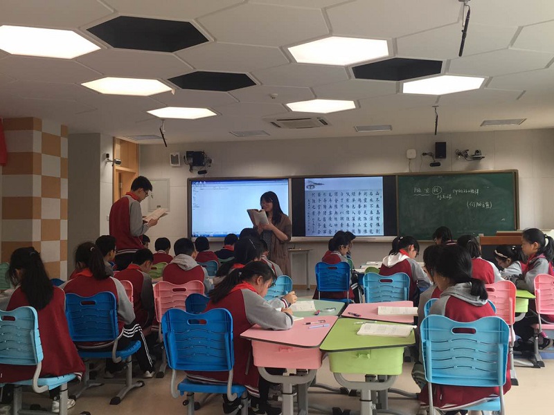 而在专业教室,5位老师各自呈现了一堂精彩的课。音乐课《唱脸谱》、《红河谷》,美术课《苏州园林》,老师们用巧妙的环节设计,恰当的语言过度,准确的课堂评价提高了孩子们对课程的喜爱,加深了对美的欣赏与理解。体育老师的《篮球行进间运球》,在做好充分的安全防范、安全教育工作的基础上,采用分步教学的方法,带领孩子们做了多项练习,让孩子们在相互鼓励中体会到成功的喜悦。信息老师带来的《Arduino——滚动的点阵屏》,独具匠心,引导学生在学中做,在做中学,设置的任务条理清晰、重难点把握精准,赢得了在座老师的一致好评!