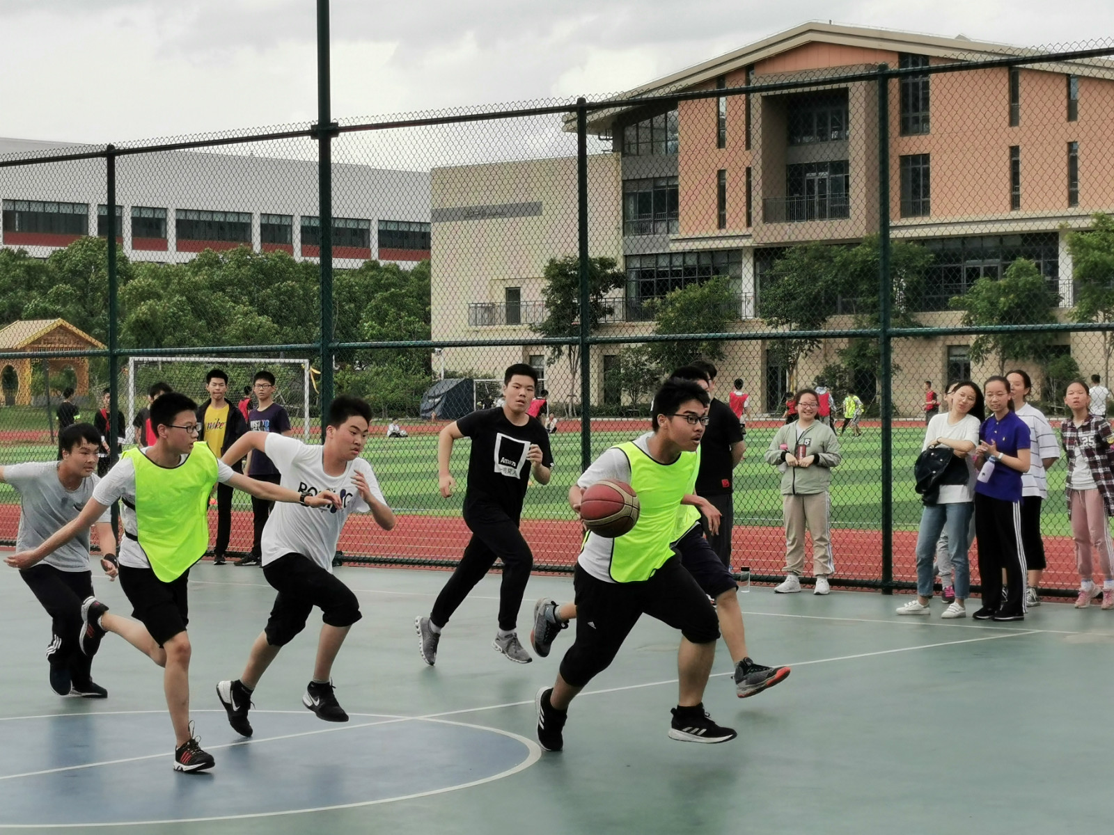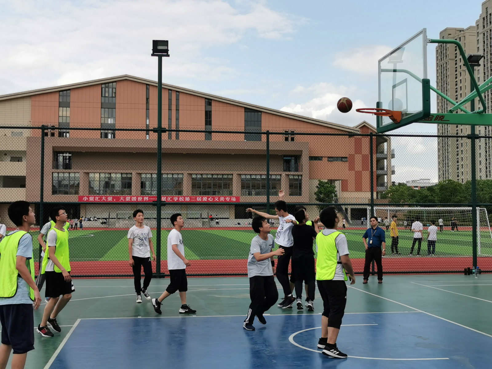 比赛按国际篮联公布的最新规则,采用抽签分组的方式,循环淘汰赛制,增进了各班之间交流学习的机会,丰富了学生的课外生活。