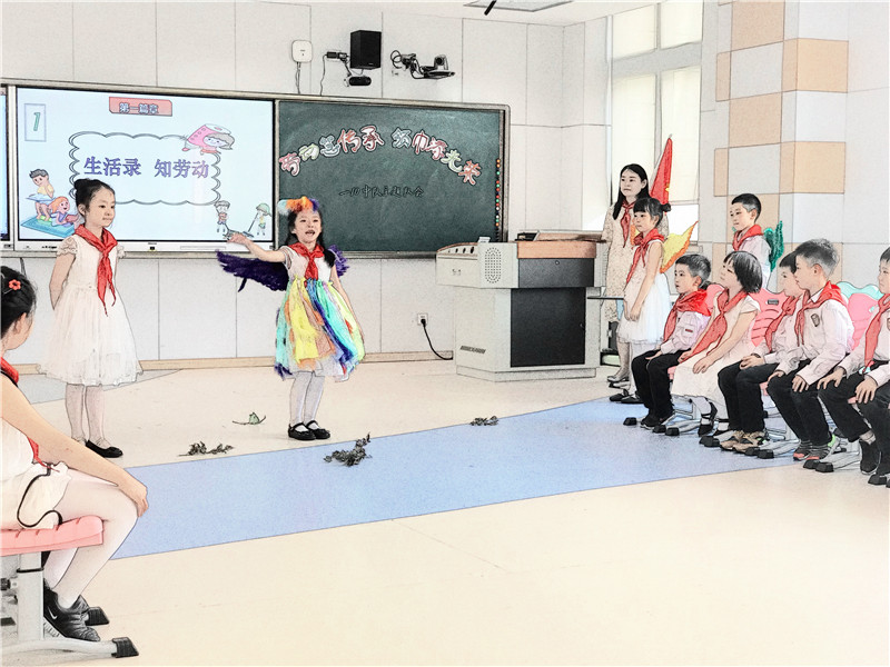 首先是舞台剧《寒号鸟的故事》闪亮登场,小队员们毫不怯场,把各个角色演绎得淋漓尽致,台下的队员们深深地明白了劳动是光荣的,不劳动是没有好结果的。