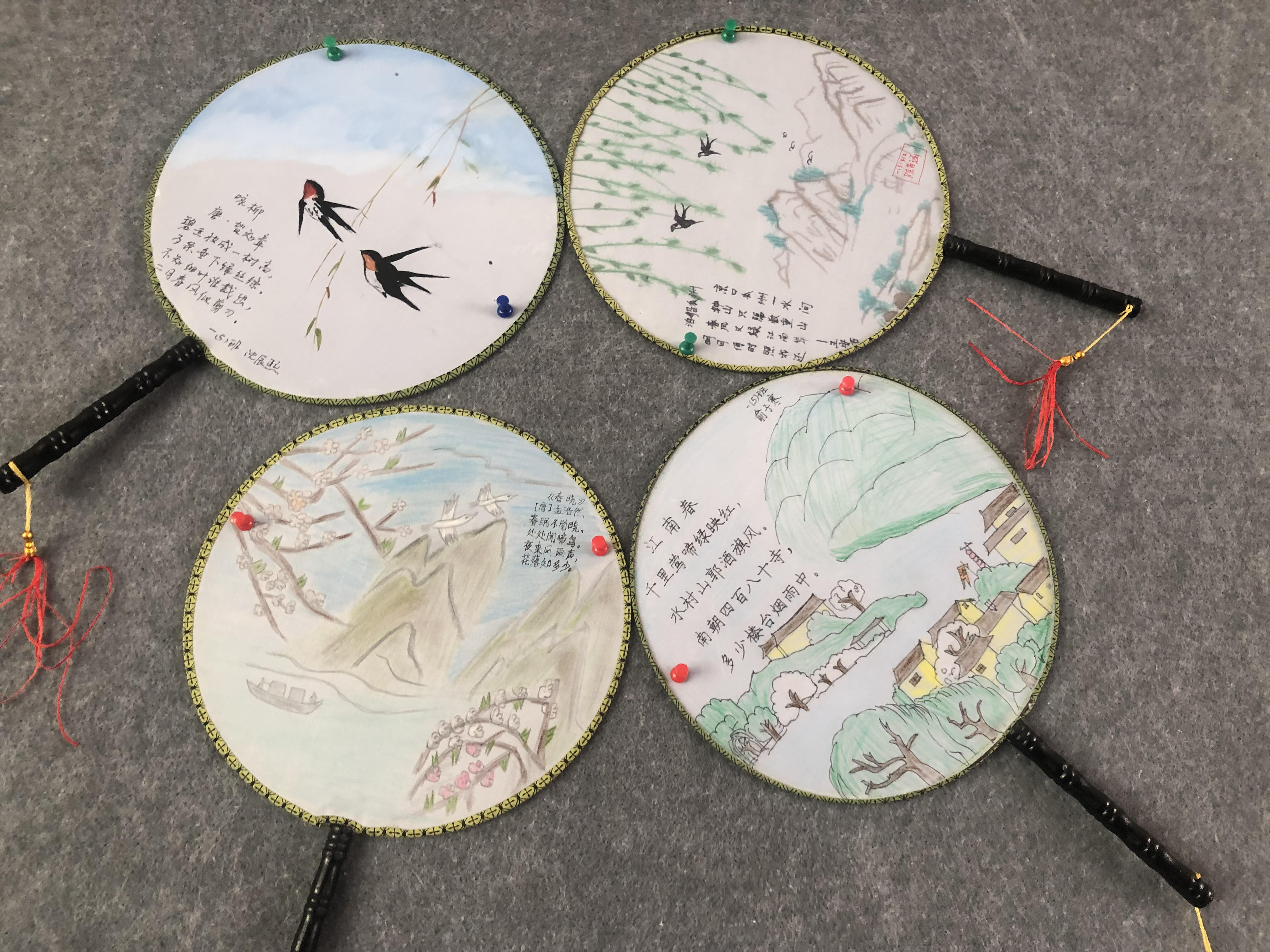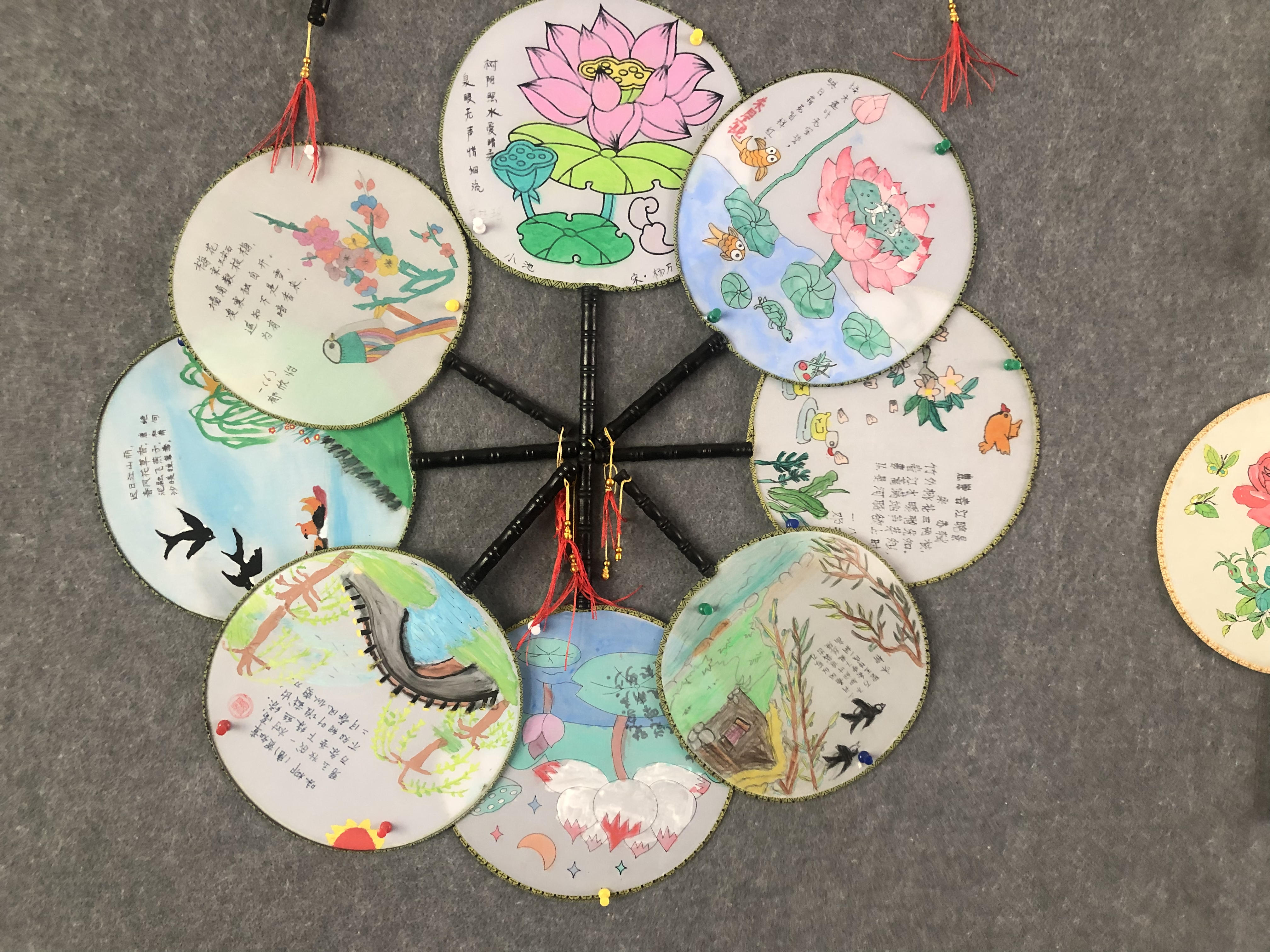 在扇面上题字绘画是古代文人的一种雅好,虽然团扇已经远离我们的生活,但这种文化印记仍然值得传承推广。乘着艺术节的风帆,伴着吴门书画的意蕴,星汇学校组织开展了“诗配画”扇面设计系列活动,小朋友们举起画笔,绘出一幅幅精美的扇面作品。