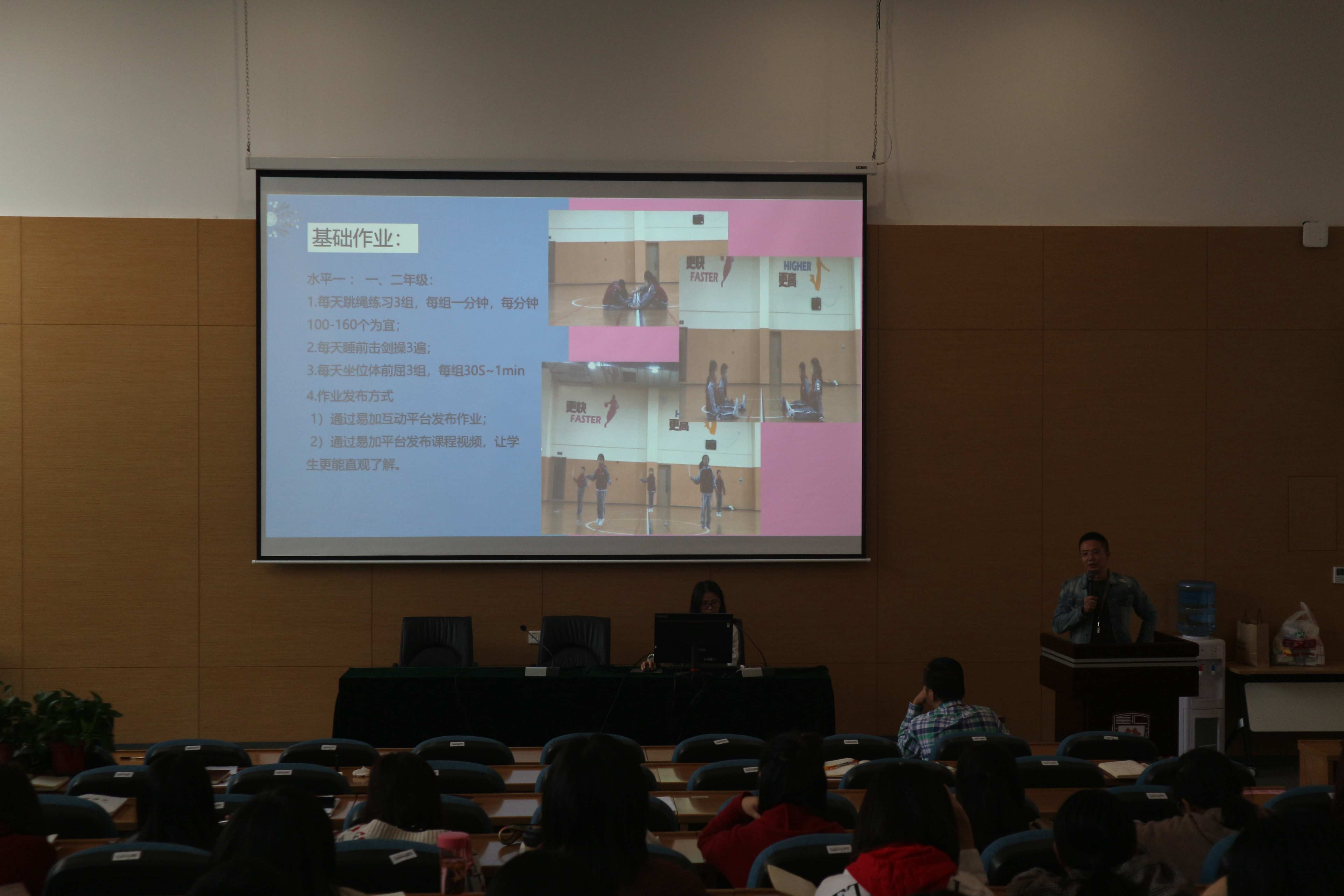在一片掌声中,活动进入第二版块。体育组、数学组和综研组学科融合进行了有关创新作业的主题汇报。体育作业是学生生活的一部分,根据学生的生理条件来布置,有常规的跳绳、球类等等,还有具有星汇特色的击剑操,始终秉持着“为了孩子们的健康生活,每天运动1小时”的宗旨。