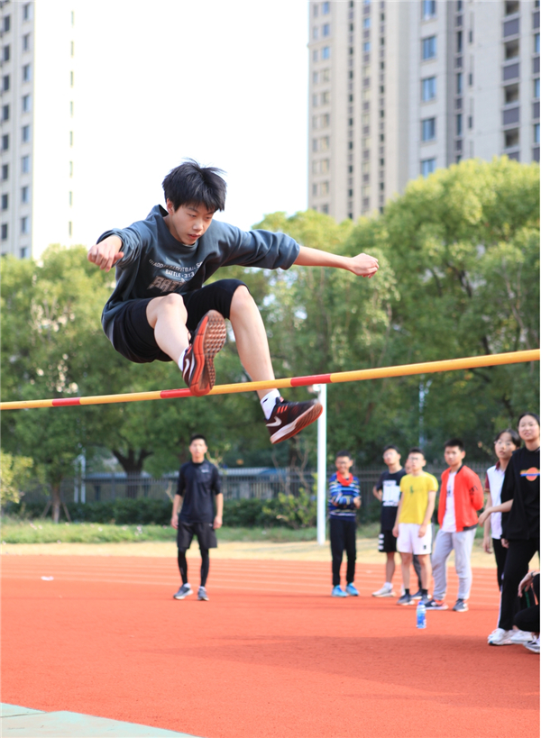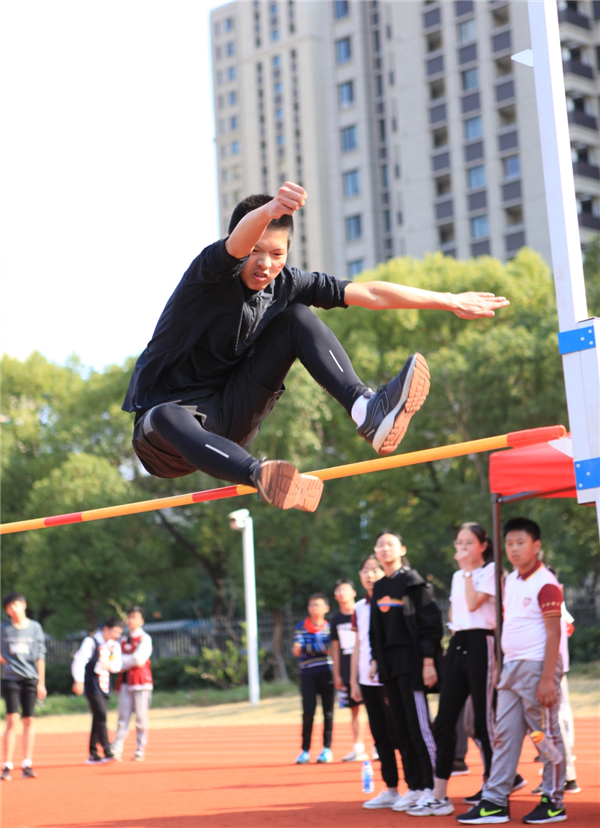 跳高场上,高高的杆子并未阻挡住凌空直上的斗志。双目紧盯,默默酝酿。起步、加速、腾空而起,稳稳落地!似海燕轻捷,似骏马腾空,似雄鹰凌云。顿时掌声四起,喝彩飞扬!