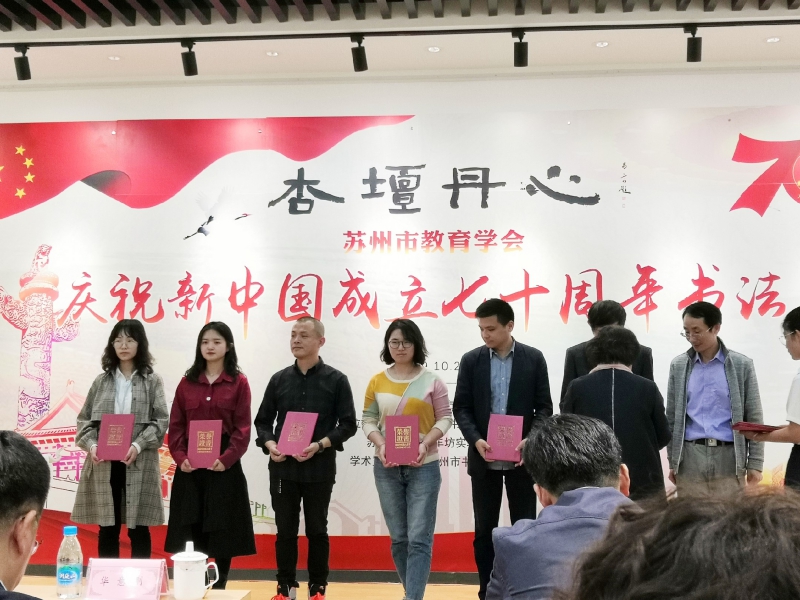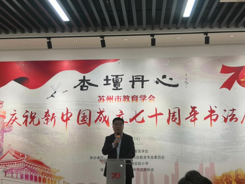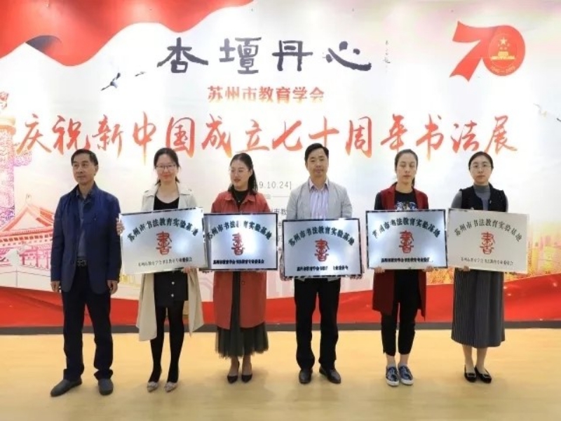 2019年10月24日下午,在车坊实验小学淞泽校区举行了“杏坛丹心——苏州市教育学会庆祝新中国成立七十周年书法展”的开幕式活动。此次活动是由苏州市教育学会主办,苏州市教育学会书法教育专业委员会、苏州工业园区车坊实验小学承办,苏州市书法家协会学术支持。
