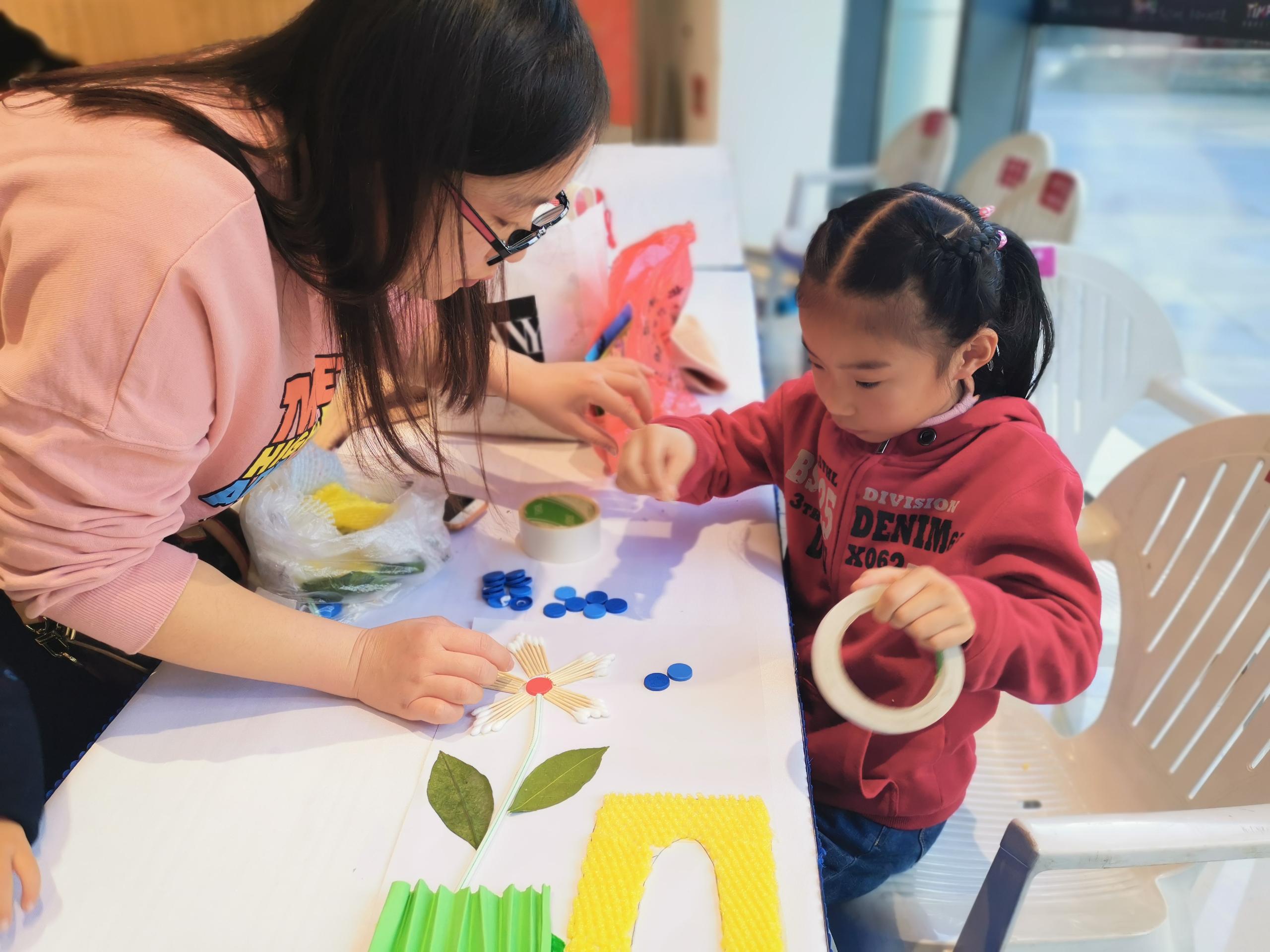 活动当天,现场的气氛可谓是热闹非凡,比赛材料的丰富程度让人印象深刻,有毛线、麦穗、树叶、布料、贝壳......五花八门,制作方法各式各样,孩子画画、家长剪纸,用自己的双手拼贴出了一幅幅精美绝伦的画作,每个人都兴致高昂,乐在其中。