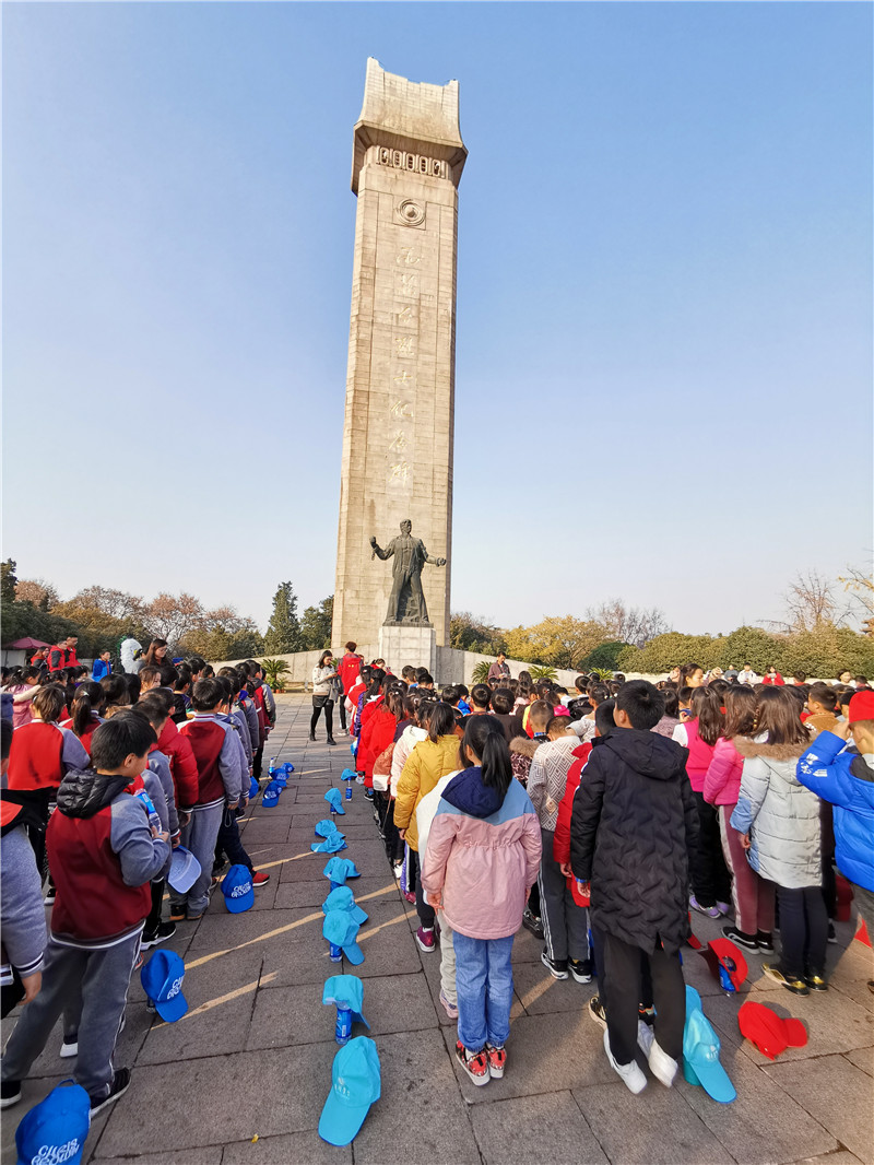 下午,同学们来到了本次研学之行的第二站——雨花台烈士陵园,在这座松柏环抱的秀丽山岗,同学们怀着沉痛的心情举行了一场缅怀先烈仪式。仪式上,孩子们为英雄默哀,通过学生代表秦朗和教师代表蔡如云老师的发言,孩子们更清楚的了解到:有多少仁人志士,为了民族的解放和人民的幸福,抛头颅、洒热血,谱写了一篇篇悲壮激越的历史篇章。是他们的生命换来了繁荣的今天,我们怎能忘记这一段段可歌可泣的悲壮历史?同学们以这样的形式表达了他们的哀思,也更深刻的认识到如今幸福生活的来之不易。立足今天,放眼未来,相信革命英雄的爱国精神和英雄气概已经在孩子心中生根、发芽……