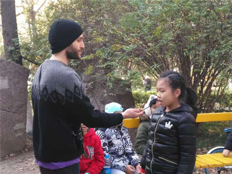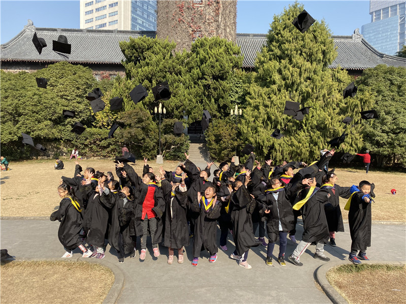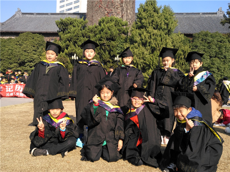 当漫步在南大古老的建筑前,同学们穿上了学士服,戴上学士帽,提前感受到了大学毕业的兴奋感。接着,来自于南京大学的阿根廷留学生,来到同学们中间,相互交流并做起了小游戏。在此过程中,同学们都能灵活运用平时所积累的单词完成外教提出的问题,大家在愉快的口语对话中渡过了一个美妙的上午。中午,同学们移步到南大食堂,品尝了南大的可口饭菜。香喷喷的美食让同学们赞不绝口,纷纷开展了“光盘行动”。