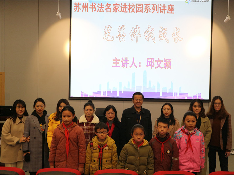 2019年12月12日下午,谢剑雄校长、王水丽副校长、星汇全体教师和报名学生带着家长一起聆听了一场精彩的讲座,本次苏州书法名家进校园系列讲座荣幸邀请到了书法家、苏州职业大学邱文颖教授,活动由教导处张艳波老师主持。