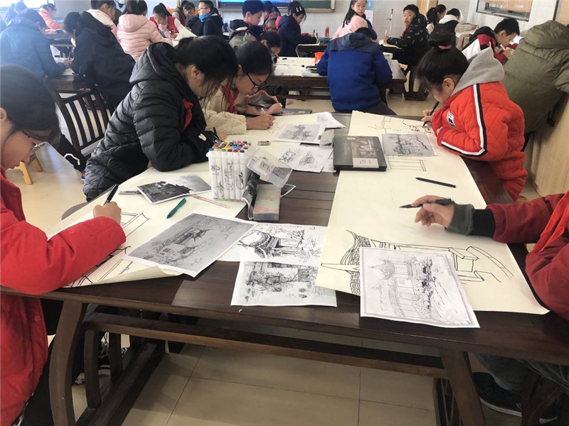 苏州的老房子在幽幽的深巷中讲述着古老的故事,用斑驳的青砖黑瓦轻吟着岁月留下的记忆,散发出浓浓的艺术气息。通过这次活动,学生们进一步充分体会了苏州建筑的魅力,感受到了苏州建筑的历史文化和艺术美感,对家乡的文化认同感油然而生,通过画作的积累与学习,也理解了建筑师的辛勤劳动,以及孜孜不倦的专研精神。