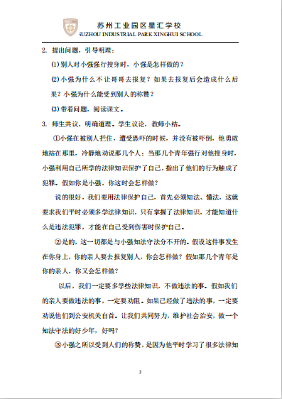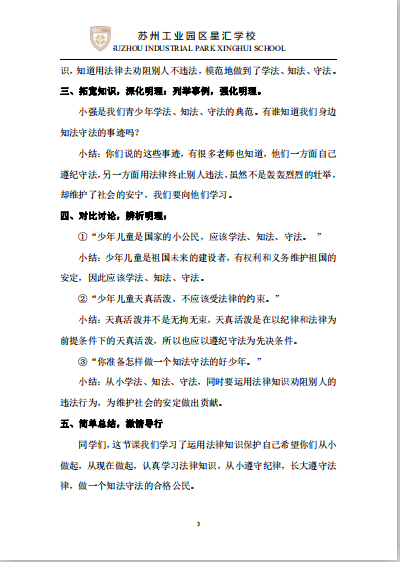 青春护航 法润成长——记园区星汇学校开展普法班会