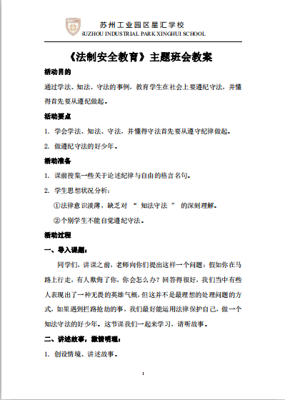 为了更好地贯彻落实习近平总书记系列重要讲话精神和党中央全面推进依法治国决策部署的重大举措,进一步加强青少年法治文化教育,帮助青少年树立法治观念,2020年7月3日,苏州工业园区星汇学校各班开展了普法教育主题班会,培养学生的法律观念,引导学生形成“学法、知法、守法、护法”的思想意识。