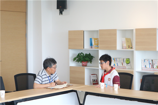接着,陆荣明和杨勇两位督查就学校执行课程标准、收费规定和规范教师行为等方面对教师和学生进行了抽查与访谈。陆荣明老师抽查了几位星汇学生,学生们对平时的作业量、作业时间、学校考试等进行了回答,并认为目前的学业并未对自己造成负担。杨勇老师通过对几位老师的访谈,对星汇学校教育教学培训、教师对学生减负的措施等方面进行了细致的了解,星汇学校非常重视对教师职业道德与专业素养的培养,老师们在教育教学中积极采取措施减轻学生学业压力。