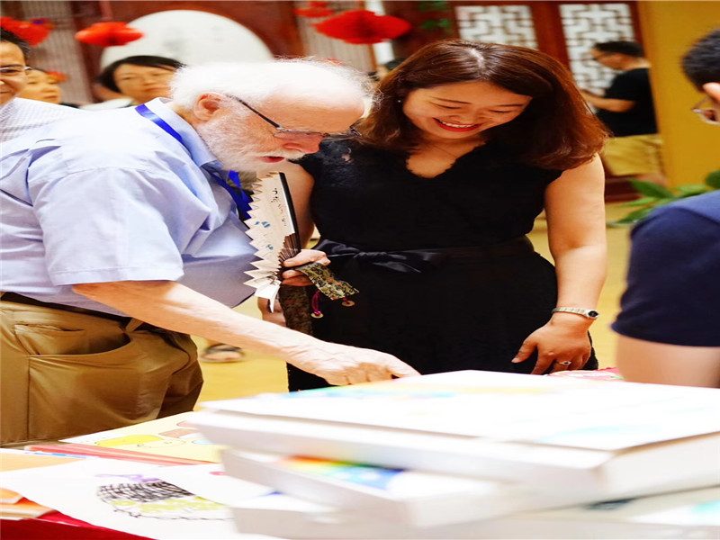 与此同时,德善书院里,孩子们把自己的作品赠与叔叔阿姨,并合影留念。看着作品上的“世界记忆”“丝绸之路”“友谊之路”等字样,他们说:“这真是一份特别珍贵的礼物!”